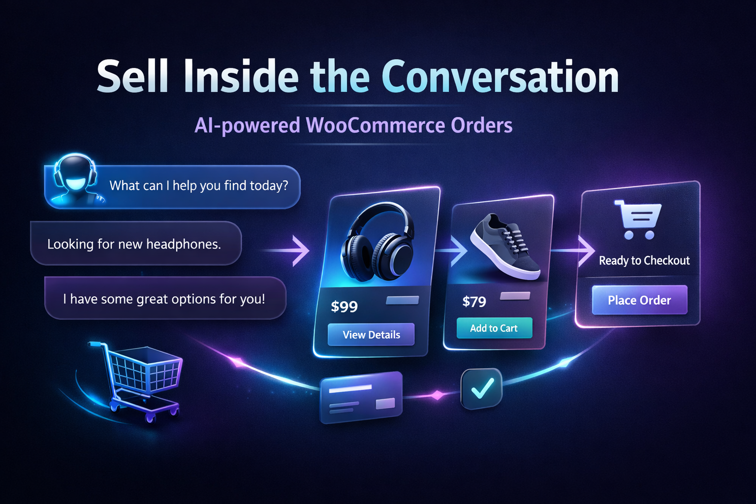It works as an intelligent shopping assistant that answers questions, recommends products directly from the catalog, and helps reduce cart abandonment.
